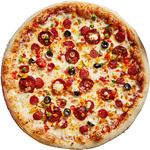 Mozzarella, merguez, chorizo de bœuf, poivrons, olives